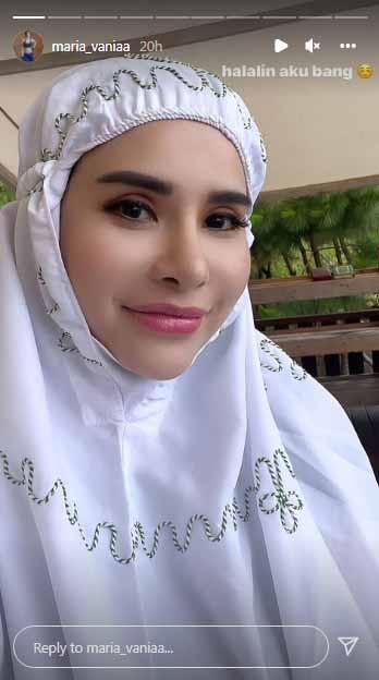 Di instagram story miliknya, Maria Vania juga mengunggah sebuah foto di mana ia terlihat cantik berseri saat sedang mengenakan mukena berwarna putih.